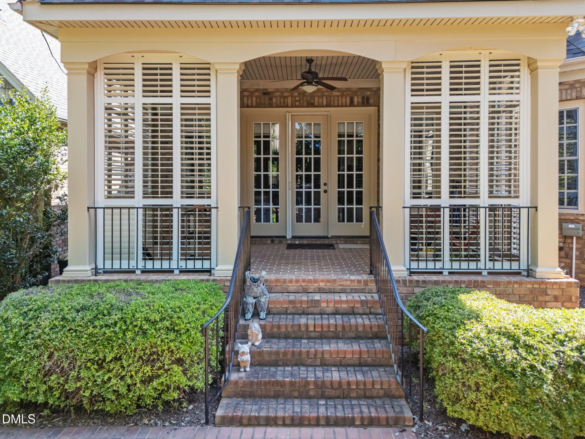 Step outside to a backyard oasis where lush landscaping ensures year-round privacy without compromising natural light. The covered brick porch with plantation shutters is an inviting retreat for morning coffee or evening cocktails. The two brick patios are perfectly placed for container gardening, and the irrigation system keeps everything flourishing even in the hottest months. With a low-maintenance backyard and the HOA caring for the front lawn, you can spend more time enjoying the things you love most.